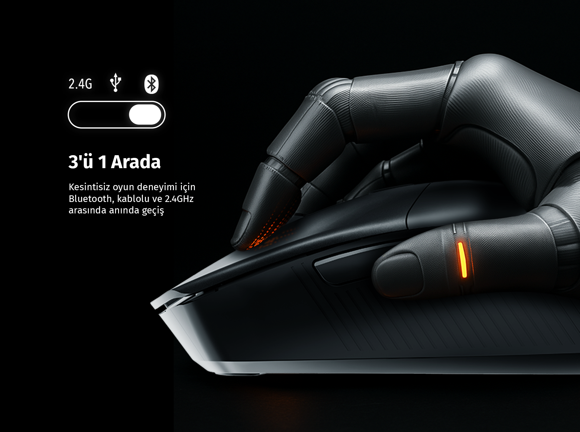 Section XR1 Wireless, USB-C bağlantısı ile yaklaşık 1 saatte tam şarj olur. Şarj sırasında mouse'u kablolu modda kullanmaya devam edebilirsiniz. Bu sayede kesintisiz oyun deneyimi sunar.